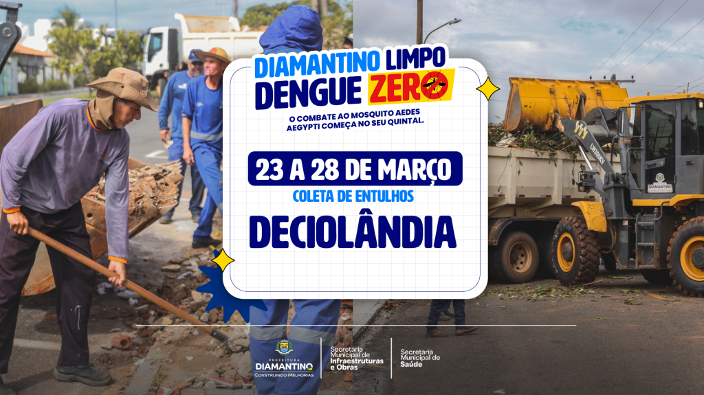 Mutirão de Limpeza “Diamantino Limpo, Dengue Zero” chega ao bairro Deciolândia entre os dias 23 e 28 de março