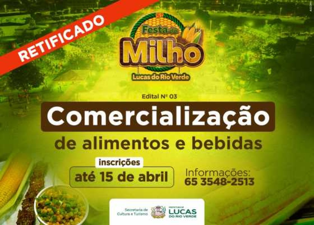 5ª Festa do Milho: Prefeitura divulga retificação no edital de comercialização de alimentos e bebidas