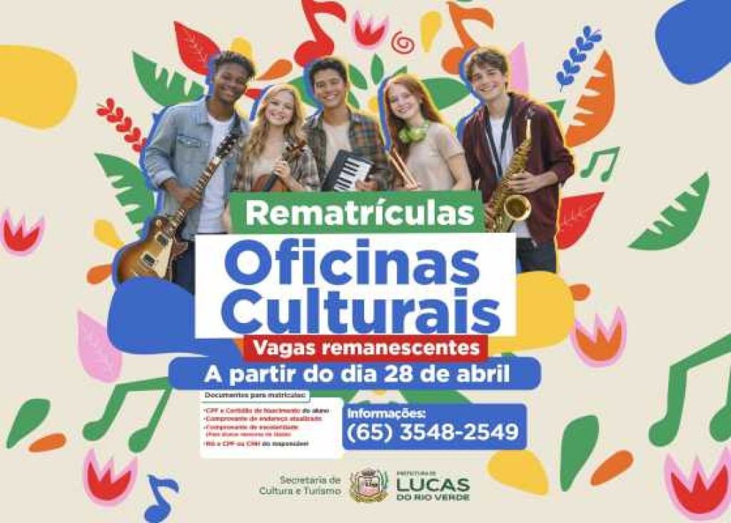 Vagas remanescentes das oficinas culturais estão abertas a partir desta terça-feira (28)